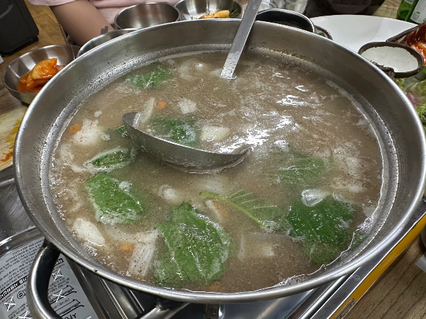 마지막 마무리로 들깨탕을 꿇여주시는데 이게 진짜 별미에요