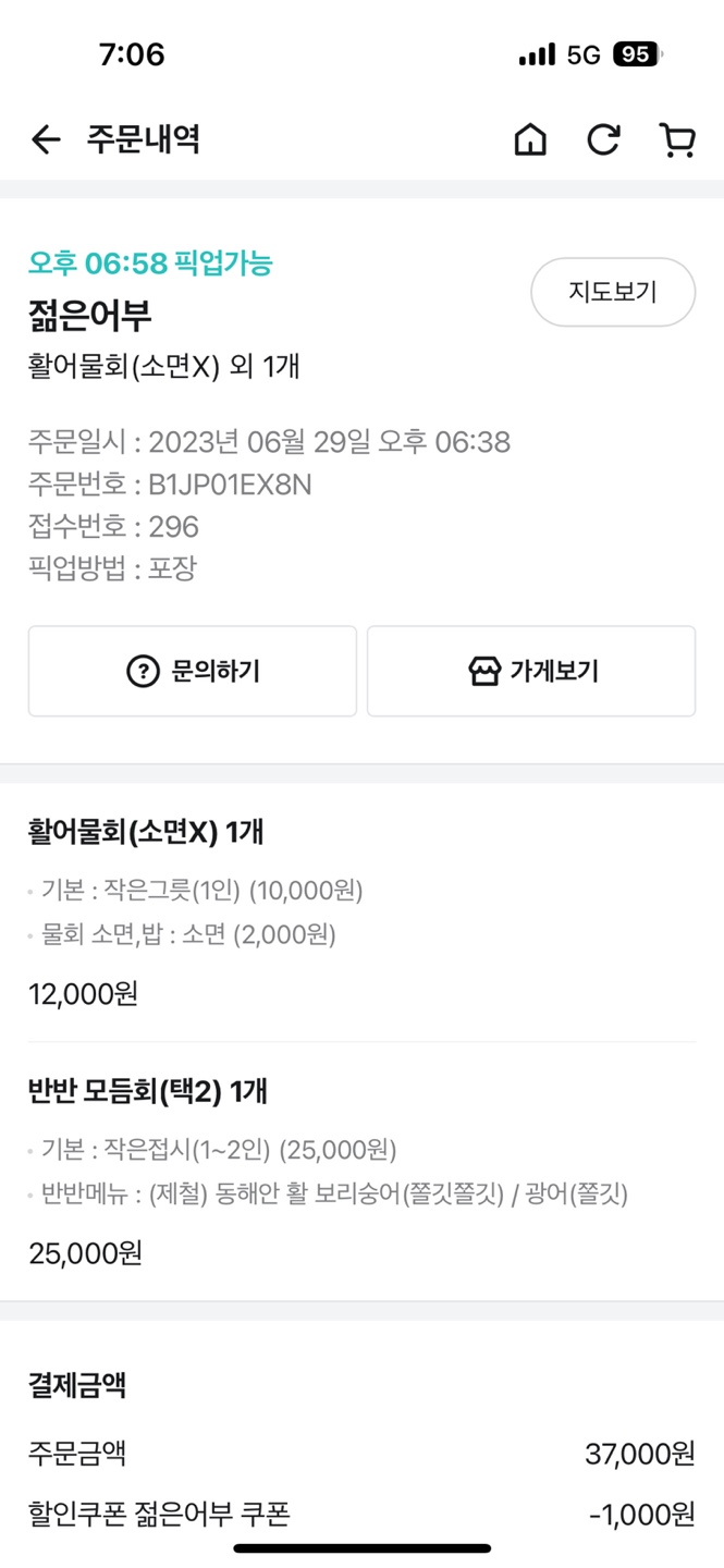 이번에는 보리숭어와 광어로 주문했어요